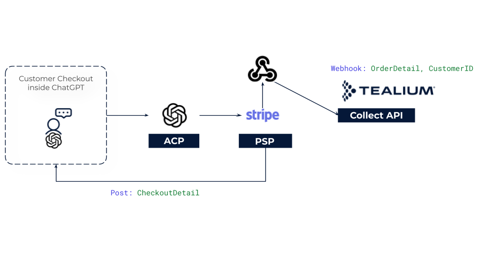 - Tealium closes the gap: With server-side Collect events and identity stitching, ACP purchases flow into the same data pipelines you already manage.