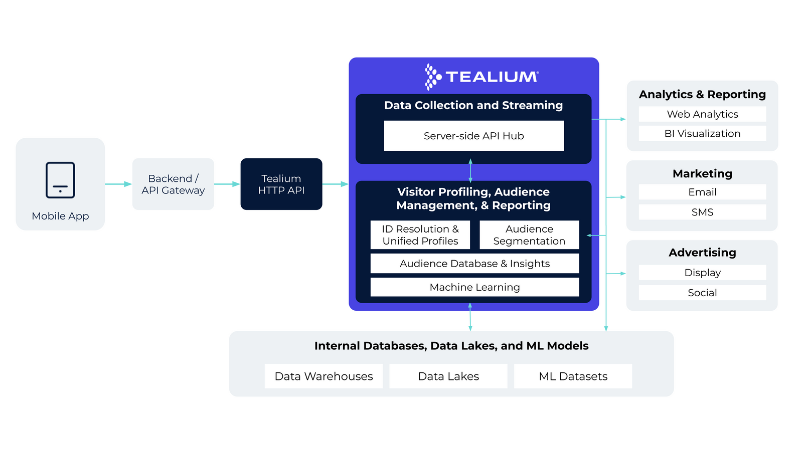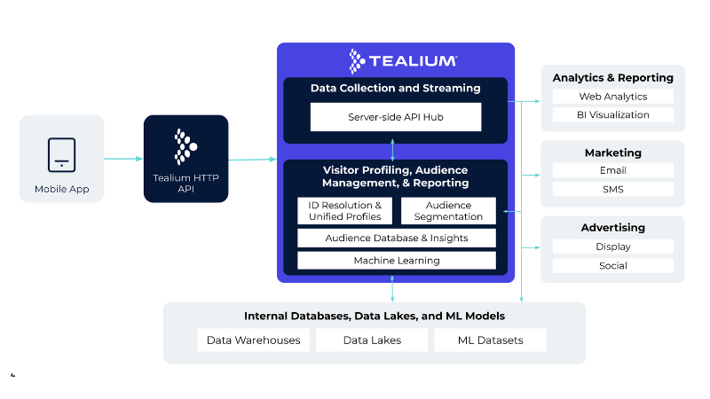 - Even without an SDK, mobile apps can stream events to Tealium in real time.