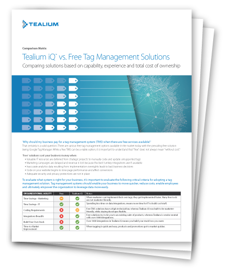 To evaluate what system is right for your business, it’s important to consider the overall ROI for adopting a tag management solution beyond product cost. Solutions should enable your business to move quicker, reduce resource costs, enable employees and ultimately empower the organization to leverage data more easily.
