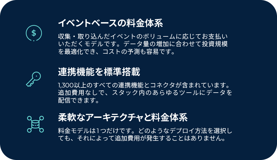 アクティベーション速度 バッチ処理中心。リアルタイム処理は追加機能。 バッチ処理のみ。ネイティブなリアルタイム処理はなし。 ミリ秒単位、トリガー起動、またはスケジュール実行、いつでも対応可能です。