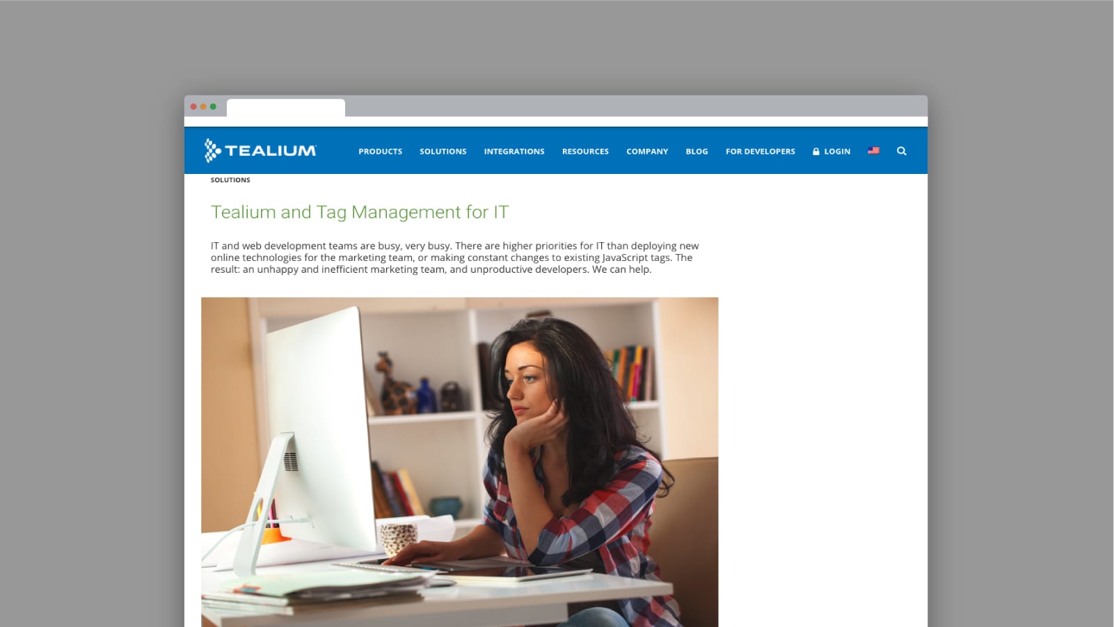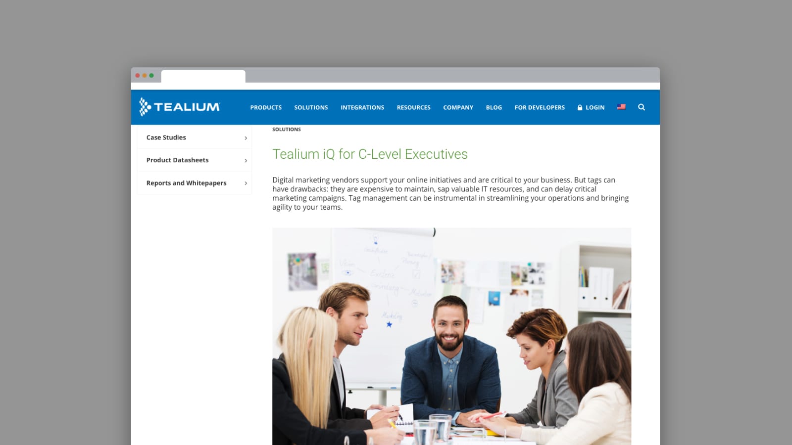 “Since we started using Tealium, our revenues have grown more than 2,000 percent. Over that time period, we estimate Tealium directly contributed 10 percent to overall income, serving as a catalyst for our technology mix.”
