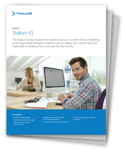 O Tealium iQ Tag Management capacita os usuários para controlar e gerenciar seus dados e fornecedores em dispositivos web, móveis, IoT e conectados. Como fundação do Universal Data Hub da Tealium, a solução Tealium iQ permite que as organizações de marketing unifiquem fontes de dados diferentes, gerem interações de visitantes mais consistentes e controlem as implementações de Tecnologia em Marketing.
