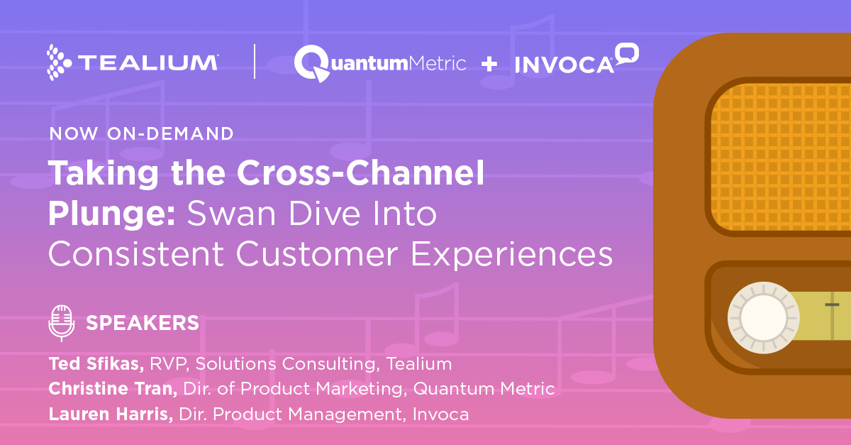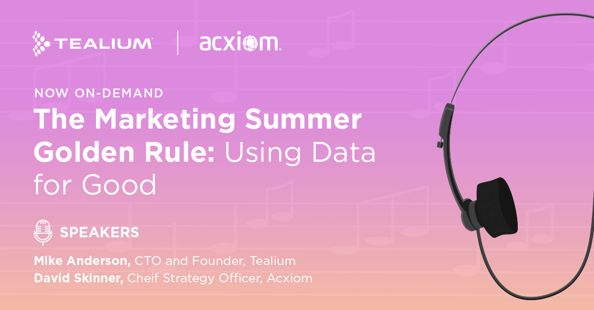 Trusted – Providing an experience where preferences are upheld TRUSTED Join Tealium’s Founder and CTO Mike Anderson and Acxiom’s Chief Strategy Officer David Skinner as they teach attendees how to use technology to follow the golden rule of data. UNIFIED Join Jay Calavas, Chief Innovation Officer, Tealium and Garin Hobbs, Director, Deal Strategy, Iterable as they discuss how to integrate a growth marketing platform with a customer data platform to maximize customer engagement at every stage of the lifecycle journey. NOW Join Brian Moore, Integrated Solutions Architect, Tealium and Magith Noohukhan, EVERYWHERE Join Ted Sfikas, RVP of Solutions Consulting at Tealium, Christine Tran, Director of Product Marketing at Quantum Metric, and Lauren Harris, Director of Product Management at Invoca as they share the secret to easily creating a seamless customer experience using the flow of cross-channel data. DELIGHT Join Ian Halliday, Solutions Consultant, Tealium and Nick Schneider, Senior Solutions Consultant, Contentsquare as they highlight how pairing unique data insights with real-time delivery provides the best customer experience possible. Live attendees for each webinar will be entered for a chance to win a $100 gift card to LiveNation, good for a future concert of your choice! Additionally, if you attend all 5 webinars live, you will be entered for a chance to win your choice of the following: