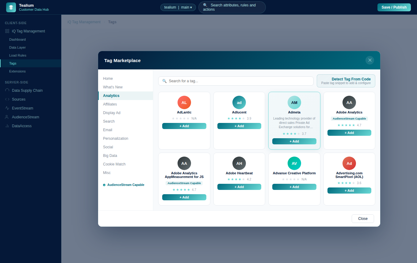 If you work with tools outside Treasure Data's managed list, you're writing custom code or building expensive connectors. With Tealium, the integration likely exists. Whether it's a niche analytics platform, a regional ad network, or an industry-specific tool, your team avoids months of engineering work. Integration breadth directly impacts your time-to-value.